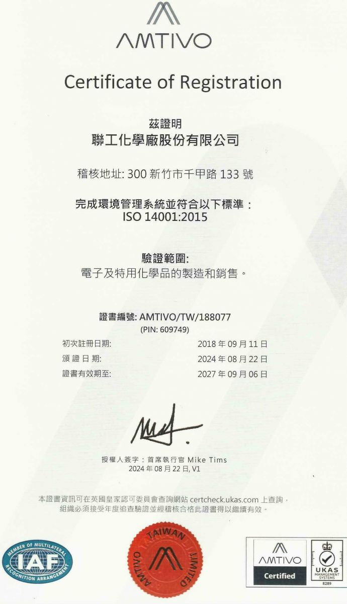 本公司已通過ISO14001驗證。