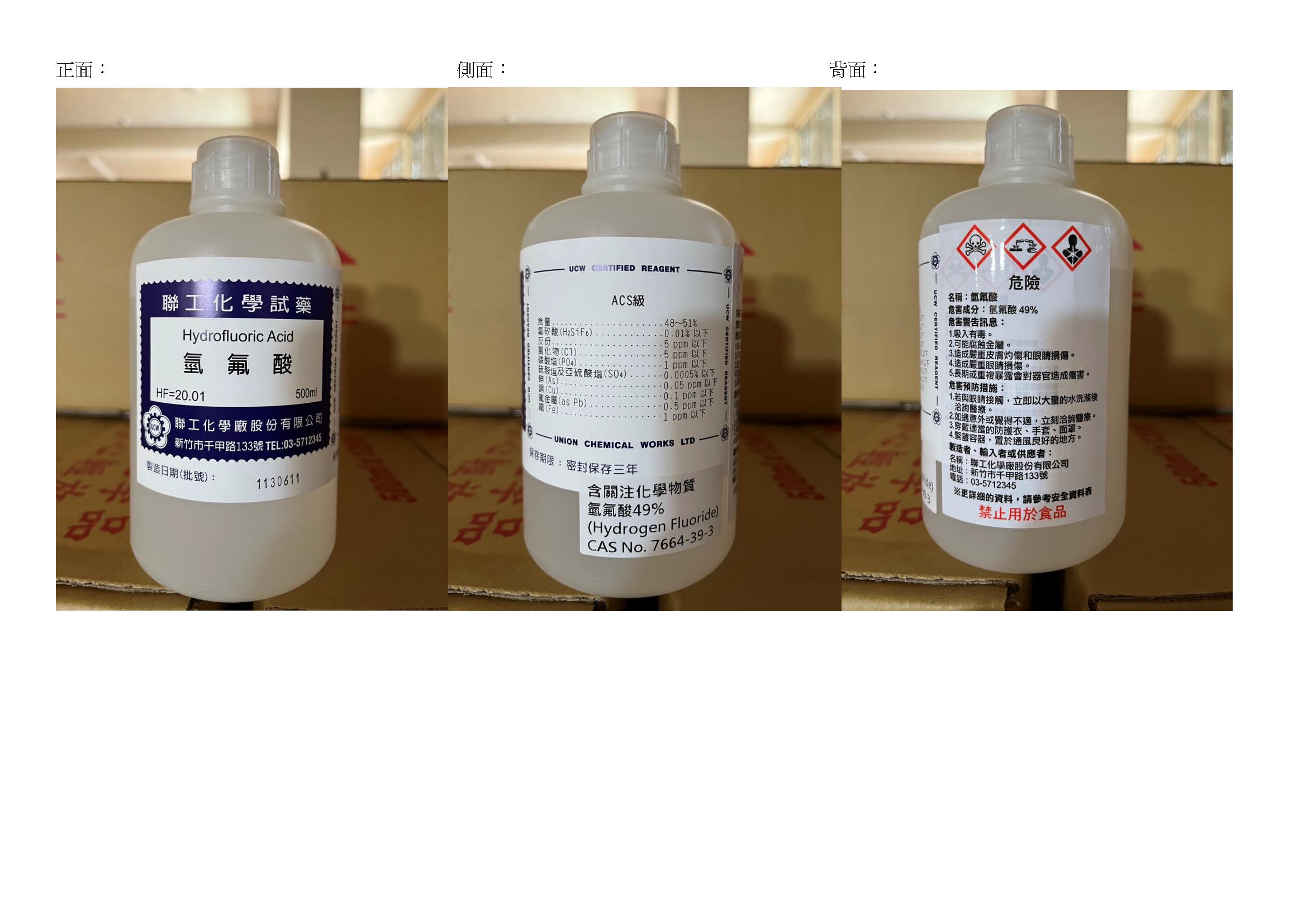 | 氫氟酸為危害性關注化學物質,購買需申報,訂購前請先詢問。 |